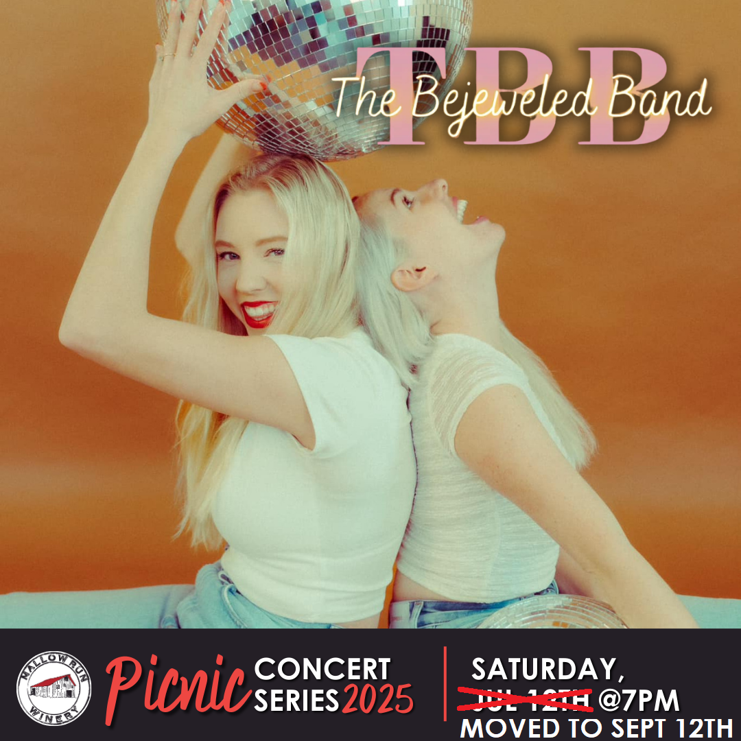 The Bejeweled Band Unofficial Taylor Swift music tribute band. Live on the lawn at Mallow Run Winery Friday, September 12th. -Gates open by 5:30pm -Klarc Whitson opens at 6pm -Bejeweled hits the stage at 7pm Concert is rain or shine. In the event of dangerous weather conditions the concert may be cancelled and your ticket...